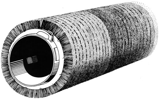 A strip brush “coiled and attached under tension” onto a tube. Often this type of brush will be considered a disposable unit due to the minimal investment in the tube, but tubes can be re-used. We manufacture simple to complex tubes in house, along with offering repair to “like new condition” and dynamic balancing as an option. For information on brushes that are not permanently mounted to a tube, see Loose Coil Brush.
