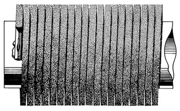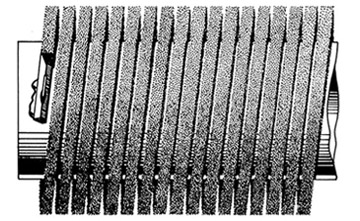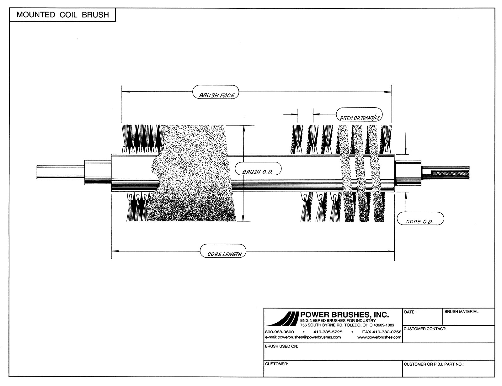A coil brush with a large pitch, or few turns per ft. can resemble an auger, where a coil brush with a small pitch or many turns per ft. will give you the highest density. On on a high density coil brush the turns of the brush may not even be visible.